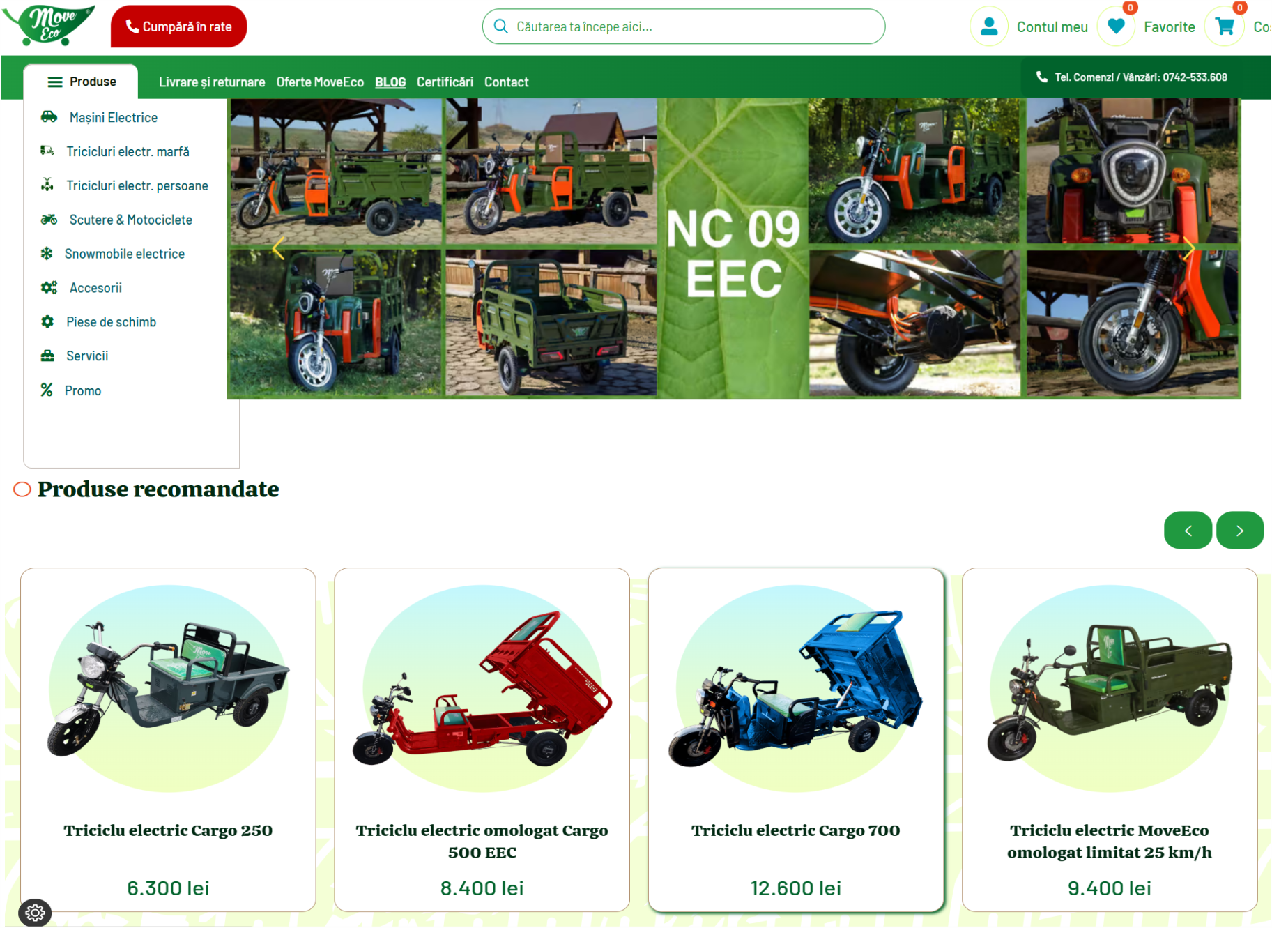 Producător unic în Europa de Tricicluri Electrice, Scutere și Trotinete – a fost înființată în anul 2016 cu un trend ascendent, vine cu o propunere „ECO„ a produselor sale de viitor. Produsele sunt asamblate în Romania pe linia de producție MoveEco, testate la ieșirea din producție de specialiști care primesc zilnic feedbackurile clienților noștri din toată Europa, ceea ce oferă o garanție și un service de valoare Europeană. Aceste argumente ar trebui să conteze în alegerea dumneavoastră și vă recomandăm produsele MoveEco cu încredere.